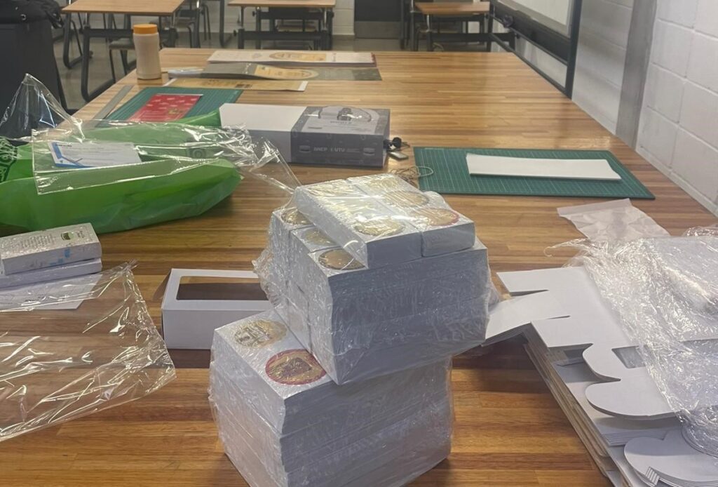 El packaging del alfajor (bolsas, envoltorios, adhesivos y cajas), el diseño y montaje del stand en la feria fue realizado por los estudiantes de Diseño Gráfico quienes llevaron adelante la tarea con mucho profesionalismo y compromiso. Por su parte, la impresión de los materiales fue realizada por la Unidad de Producción de Industrias Gráficas.