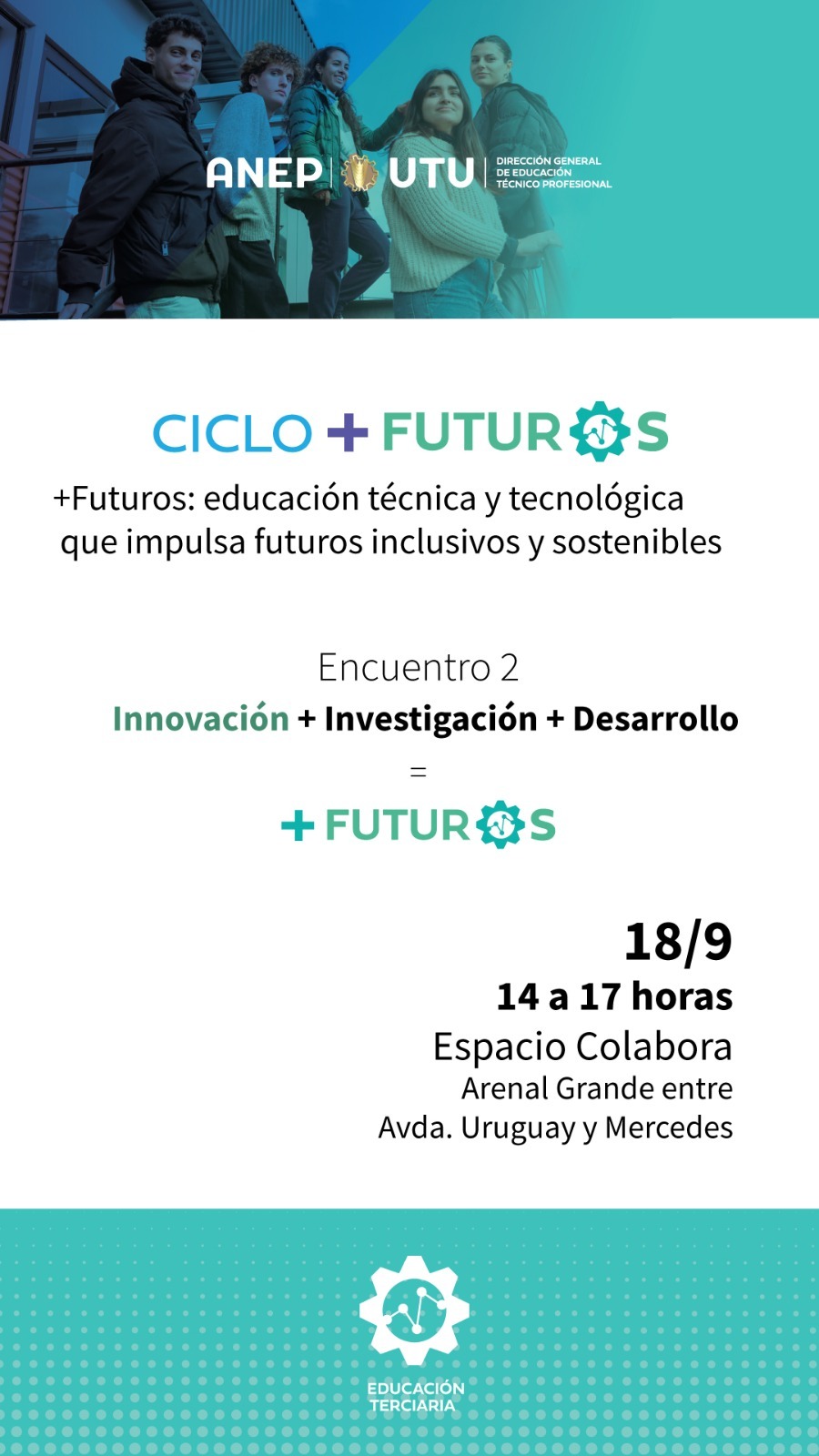 Es el segundo encuentro del ciclo “+Futuros: educación técnica y tecnológica que impulsa futuros inclusivos y sostenibles”.